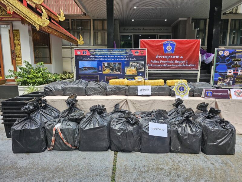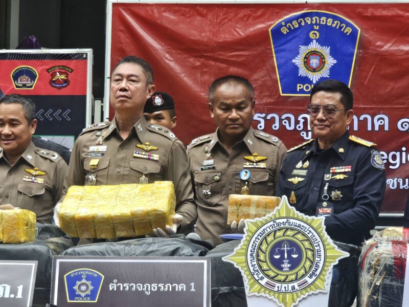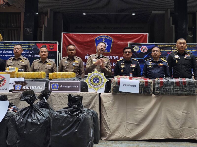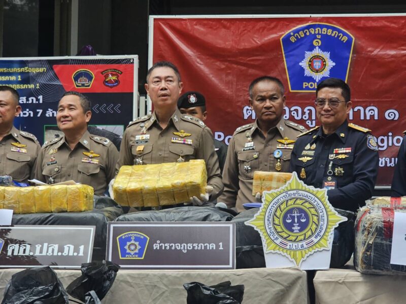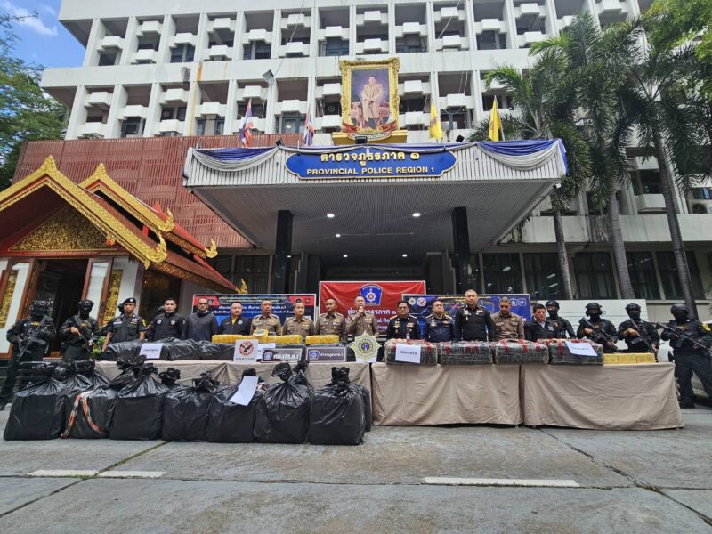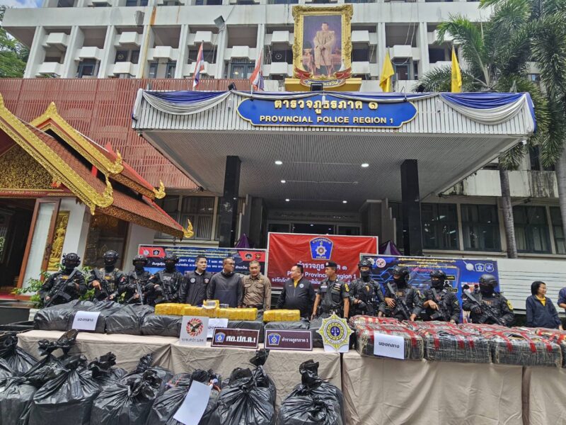 ตำรวจภูธรภาค 1 แถลงผลการจับกุมยาเสพติดรายสำคัญ 3 คดี ยาบ้า 10,460,000 เม็ด