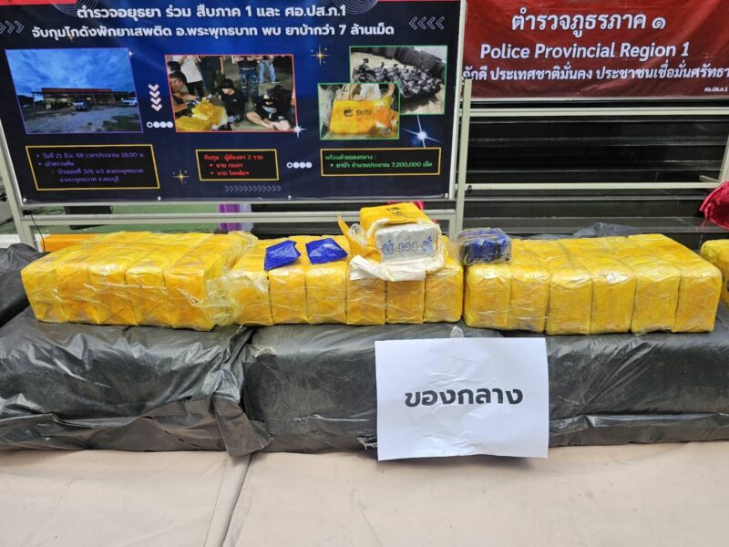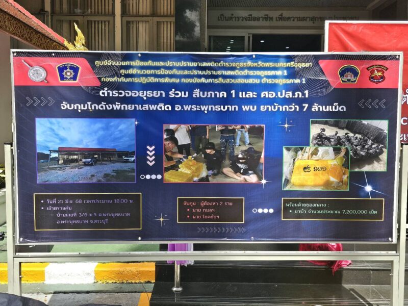 คดีนี้สืบเนื่องจากเมื่อวันที่ 7 พ.ค.68 เวลาประมาณ 06:10 น. เจ้าหน้าที่ตำรวจได้เข้าตรวจค้นบ้านหลังหนึ่งซึ่งเป็นแหล่งพักยาเสพติตในพื้นที่ ต.ราชคราม อ.บางไทร จว.พระนครศรีอยุธยา ผลการตรวจค้นพบยาบ้า 40 กระสอบ คิดเป็นจำนวนยาบ้าประมาณ 8,732,000 เม็ด และยาไอซ์ 18 กระสอบ น้ำหนักรวมประมาณ 720 กิโลกรัม และจับกุมผู้ต้องหาได้ 1 คน หลังจากนั้นเจ้าหน้าที่ชุดปฏิบัติการป้องกันปราบปรามยาเสพติด ตำรวจภูธรภาค 1 ชุดที่ 1 นำโดย พ.ต.อ.จักรพันธ์ โอสถากันต์ ผกก.ปพ.บก.สส.ภ.ภ.1 และชุดขยายผลฯ ของ ศอ.ปส.ภ.จว.พระนครศรีอยุธยา ได้ร่วมกันทำการสืบสวนขยายผลอย่างต่อเนื่อง จนกระทั่งทราบว่า เครือข่ายของแหล่งพักยาเสพติด ต.ราชคราม ดังกล่าว ได้ไปรับยาเสพติดมาจากภาคเหนือ และมาเช่าโกดังซึ่งอยู่ที่บริเวณริมถนนพหลโยธิน อ.พระพุทธบาท จว.สระบุรี ไว้เพื่อรอรับยาเสพติดเตรียมส่งต่อให้แก่ลูกค้าในพื้นที่ภาคกลาง เจ้าหน้าที่ตำรวจจึงได้เฝ้าติดตามพฤติการณ์ของเครือข่ายดังกล่าวตลอดมา จนกระทั่งในวันที่ 21 มิ.ย.68 เวลาประมาณ 18:00 น. เจ้าหน้าที่ตำรวจ นำโดย พ.ต.อ.จักรพันธ์ โอสถากันต์ ผกก.ปพ.บก.สส.ภ.1 และ พ.ต.อ.พีรพัสส์ ชูช่วย ผกก.สส.ภ.จว.พระนครศรีอยุธยา ได้สนธิกำลังเข้าตรวจค้นโกดังแห่งหนึ่งตั้งอยู่ในพื้นที่หมู่ที่ 5 ริมถนนพหลโยธิน อ.พระพุทธบาท จว.สระบุรี ผลการตรวจค้นพบยาเสพติดให้โทษประเภท 1 (ยาบ้า) จำนวนประมาณ 7,200,000 เม็ด และจับกมผู้ต้องหาได้ 2 คน ซึ่งกำลังจัดเตรียมยาบ้าเพื่อส่งให้แก่ลูกค้า