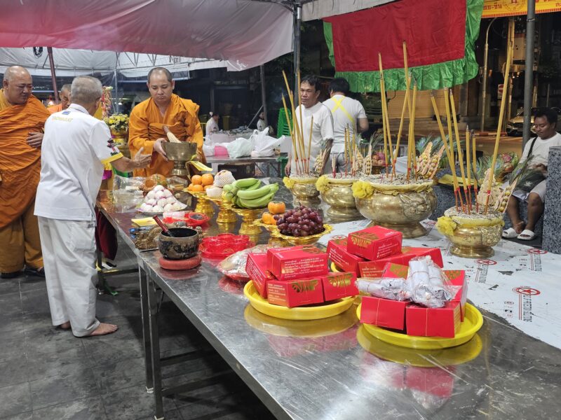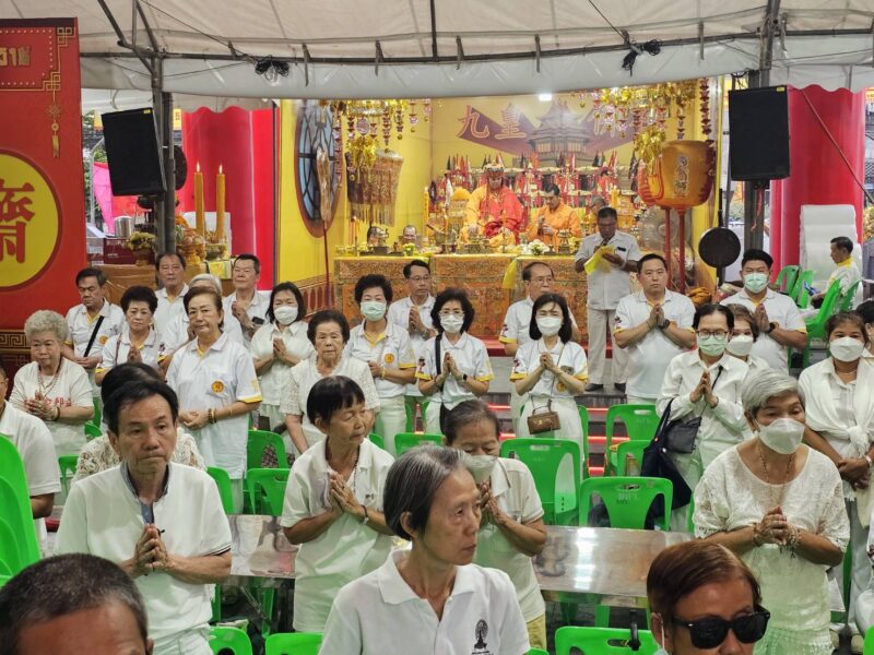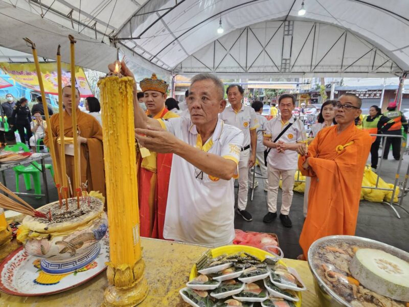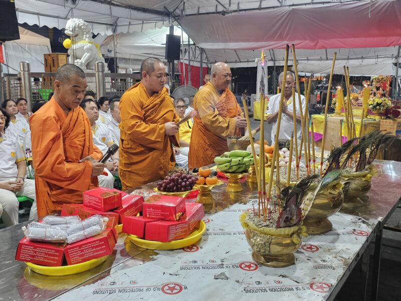 เวลา 16:00 น. คณะเจ้าภาพและกรรมการจัดงานประเพณีงานเจ รวมถึงประชาชนที่ศรัทธาในประเพณี ได้เข้าร่วมประกอบพิธีทางพระสงฆ์จีน จากนั้น