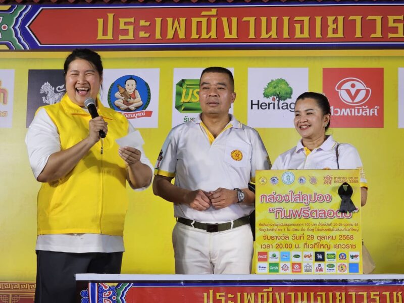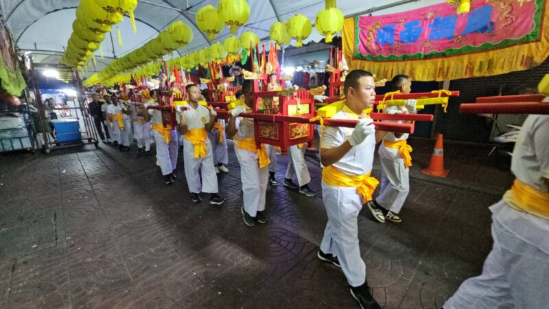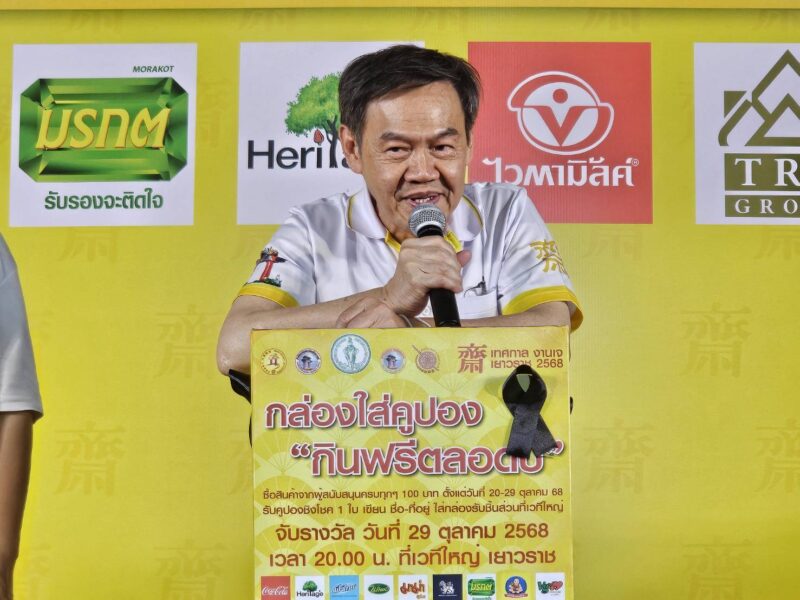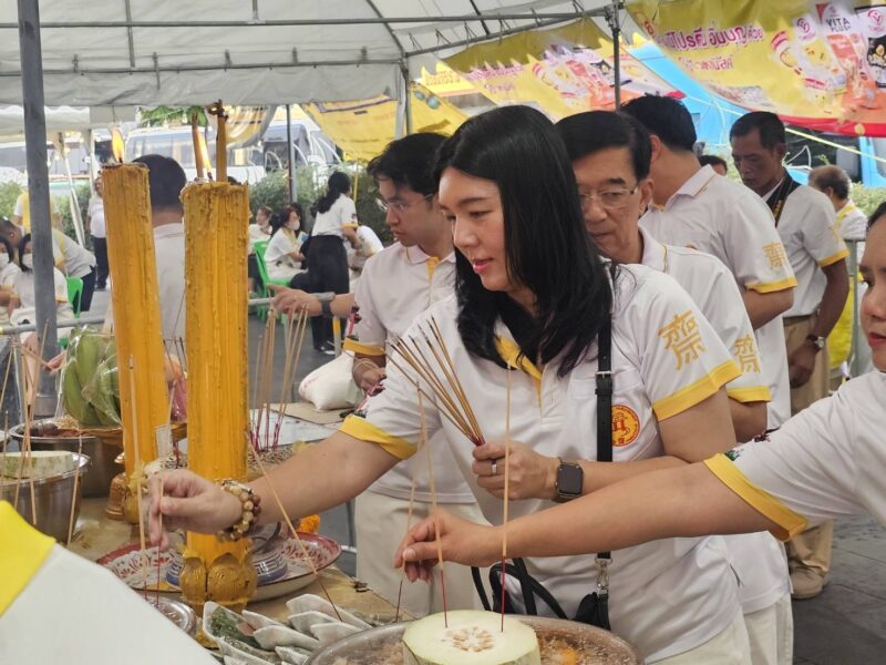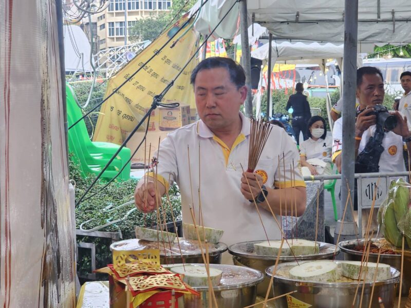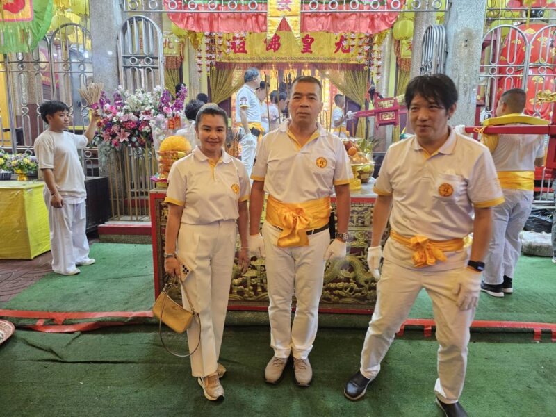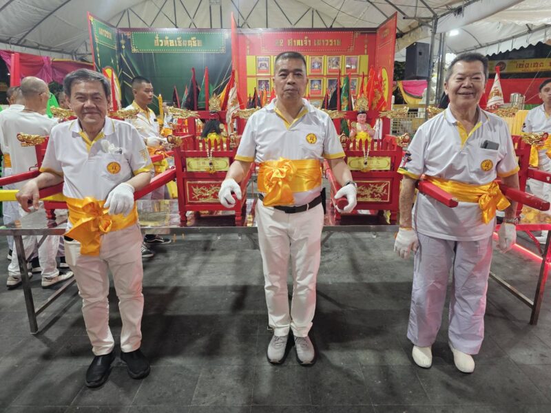 วันที่ 29 ตุลาคม พ.ศ.2568 ณ บริเวณมณฑลพิธีซุ้มประตูเฉลิมพระเกียรติ 6 รอบพระชนมพรรษา ถนนเยาวราช กรุงเทพมหานคร สำนักงานเขตสัมพันธวงศ์ กรุงเทพฯ คุณประสิทธิ์ องค์วัฒนา ประธานจัดงาน, นายพินิจ กาญจนชูศักดิ์ สมาชิกสภากรุงเทพมหานคร เขตสัมพันธวงศ์, นายธนาเดช จันทร์แก้ว ผู้อำนวยการเขตสัมพันธวงศ์, พ.ต.อ.พนม เชื้อทอง ผกก.สน.ทุ่งมหาเมฆ, อาจารย์ ธณกนก เชื้อทอง, คุณ บุญฤทธิ์ พิพัฒศิริกุล, คุณจรัสศรี สินธพเรืองชัย, คุณธีรเดช สินธพเรืองชัย, คุณพิพัฒน์ กนกนิตย์อนันต์, คุณมานพ จินานุวัฒนา, คุณชยุต วัฒนะเวชกุล กรรมการงานเจ, คุณณัฏฐนันท์ วัฒนะเวชกุล, แขกผู้มีเกียรติ เข้าร่วมในประเพณีงานเจเยาวราช ประจำปี 2568 วันสุดท้าย