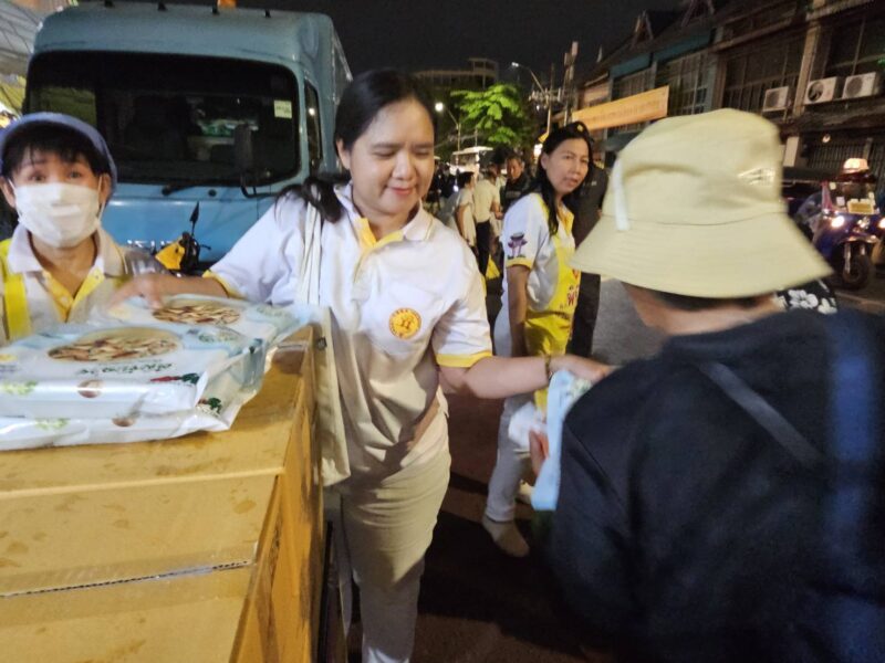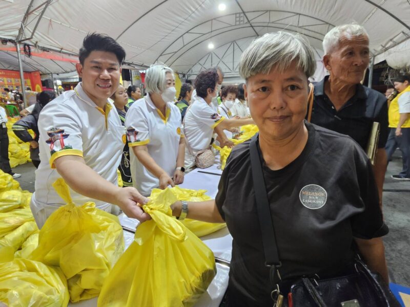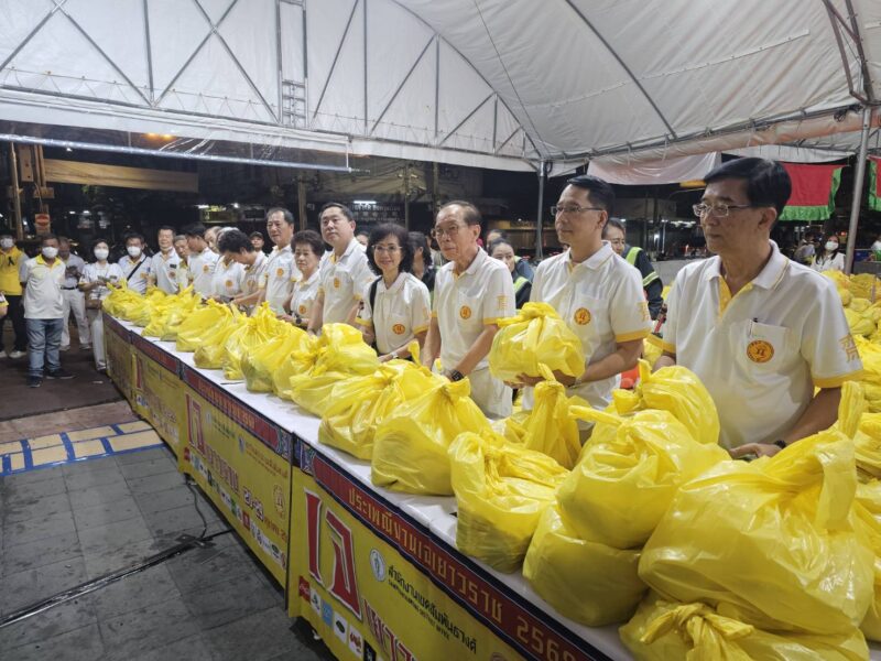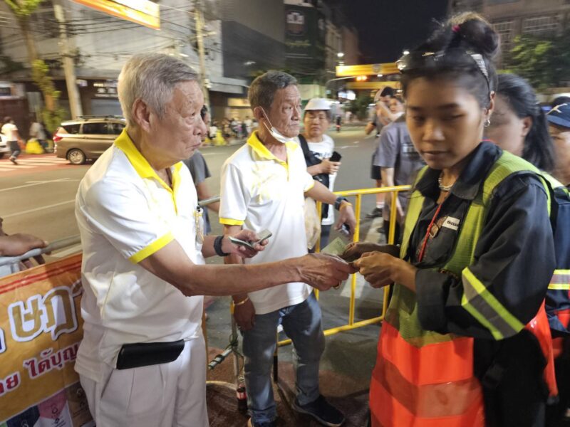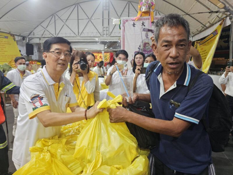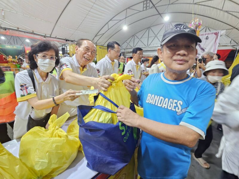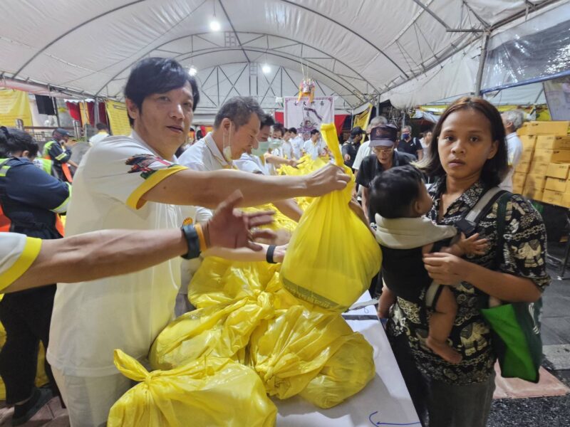 เวลา 18:00 น. คณะเจ้าภาพและกรรมการจัดงานประเพณีงานเจ ได้แจกทานสิ่งของและเงินค่ารถ ให้กับประชาชนผู้ที่ยังขาดแคลนที่มารอรับ กว่า 1,000 ชุด หลังจากนั้น