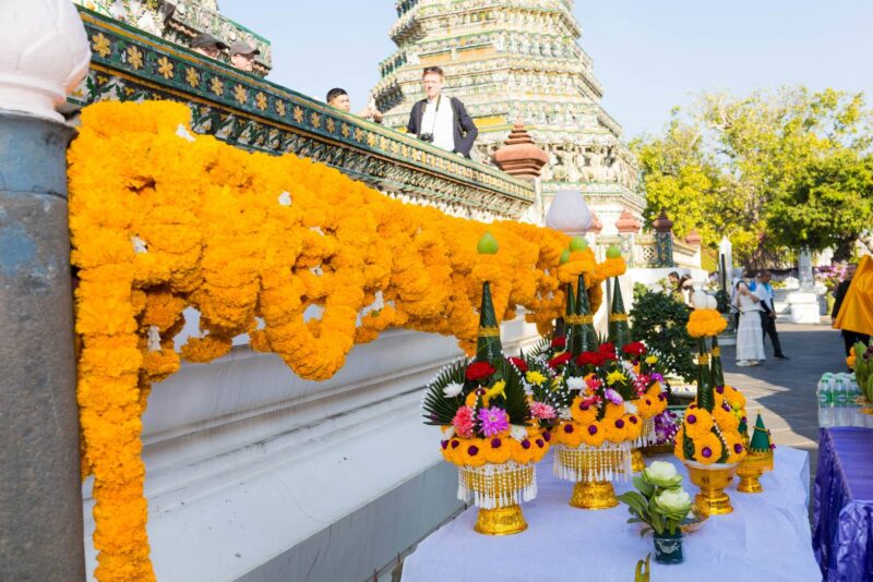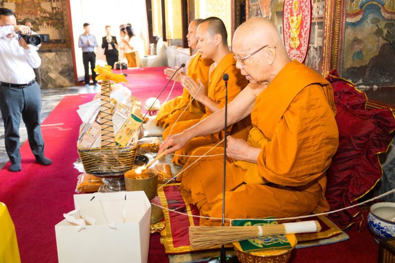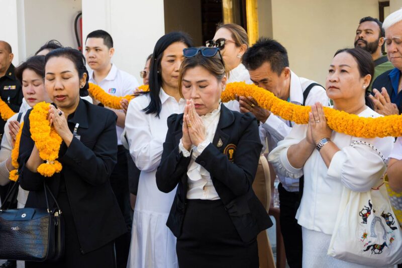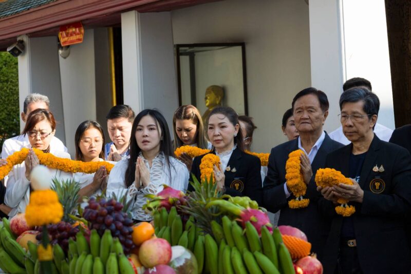 กิจกรรมภายในพิธีวันนี้ คณะกรรมการชมรมฯ ได้ร่วมถวายจตุปัจจัย และเลี้ยงภัตตาหารเพลแด่พระภิกษุสงฆ์ ประกอบด้วย ข้าวขาหมู, กระเพาะปลา, ซาลาเปา, น้ำผลไม้, ข้าวต้มมัด, ไข่ต้ม, ซาลาเปาทอด และผลไม้ 9 ชนิด พร้อมถวายเครื่องสังฆทาน และจัดเตรียมเครื่องประกอบพิธีห่มผ้าพระปรางค์ ได้แก่ ผ้าตาดสีทอง, บายศรีเทพ, บายศรีพรหม, บายศรีปากชาม, ชุดบายศรีหมากพลู, หมากพลู, บุหรี่ และน้ำ เพื่อความเป็นสิริมงคลตามโบราณประเพณี คุณพิพัฒน์ กนกนิตย์อนันต์ฯ กล่าว