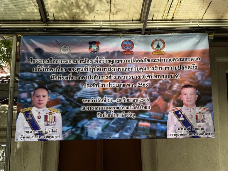 ☆ วันที่ 24 กันยายน พ.ศ.2568 เวลา 09:00 น. พ.ต.อ.สุธี พรมมาลี รอง ผบก.น.9 เป็นประธานในพิธี พร้อมด้วย พ.ต.อ.มิลิน เพียรช่าง ผกก.1 บก.ทท.1, ผกก.ทุก สนฯ, รอง ผกก.ป.ทุก สนฯ., รอง ผกก.1 บก.ทท.1, รอง ผกก.ฝอ.บก.น.9, เจ้าหน้าที่ ฝอ.ฯ ที่เกี่ยวข้อง และตัวแทนอาสาสมัครอำนวยความสะดวกนักท่องเที่ยวของทุก สน.ในสังกัด เข้าร่วมพิธีเปิดโครงการฝึกอบรมอาสาสมัคร เพื่อช่วยเหลือดูแลความปลอดภัยและอำนวยความสะดวกแก่นักท่องเที่ยว ของ บก.น.9 ณ ศาลาสตมานุสรณ์ วัดปากน้ำภาษีเจริญ แขวงปากคลองภาษีเจริญ เขตภาษีเจริญ กรุงเทพมหานคร
