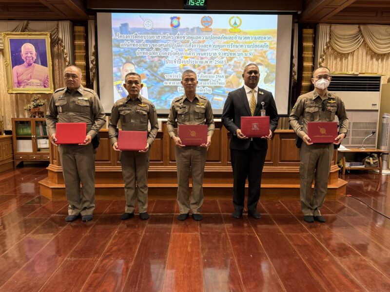 ☆ วันที่ 25 กันยายน พ.ศ.2568 เวลา 15:00 น. พ.ต.อ.สุธี พรมมาลี รอง ผบก.น.9 รรท.ผบก.น.9 เป็นประธานในพิธี พร้อมด้วย พ.ต.อ.ปราโมทย์ จันทร์บุญแก้ว ผกก.สน.เพชรเกษม, รอง ผกก.ป.ทุก สน., รอง ผกก.ฝอ.บก.น.9, สวญ.ส.ทท.3 กก.1 บก.ทท.1, สว.ส.ทท.3 กก.1 บก.ทท.1 เจ้าหน้าที่ ฝอ.ฯ ที่เกี่ยวข้อง และตัวแทนอาสาสมัครอำนวยความสะดวกนักท่องเที่ยวของทุก สน.ในสังกัด เข้าร่วมพิธีปิดโครงการฝึกอบรมอาสาสมัคร เพื่อช่วยเหลือดูแลความปลอดภัยและอำนวยความสะดวกแก่นักท่องเที่ยว ของ บก.น.9 ณ ศาลาสตมานุสรณ์ วัดปากน้ำภาษีเจริญ แขวงปากคลองภาษีเจริญ เขตภาษีเจริญ กรุงเทพมหานคร