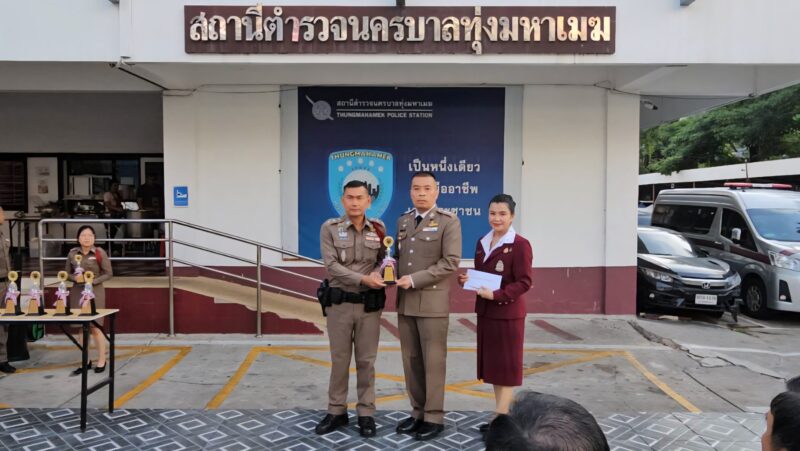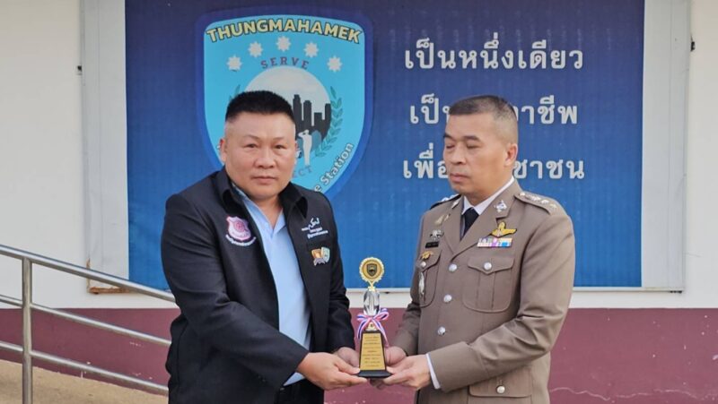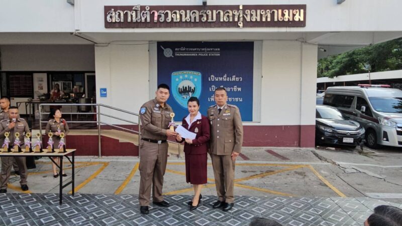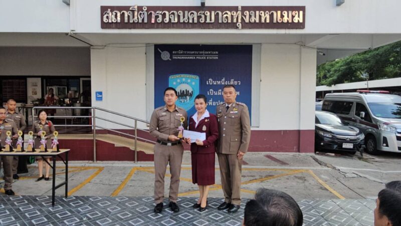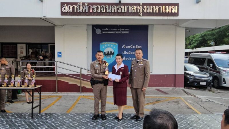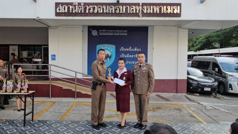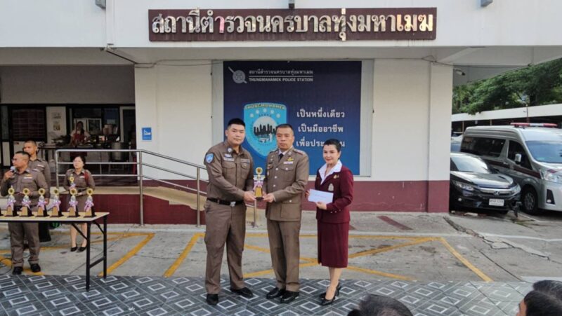 พ.ต.อ.พนม เชื้อทอง ผกก.สน.ทุ่งมหาเมฆ และ อาจารย์ ธณกนก เชื้อทอง (ภริยา) ได้มอบโล่ห์เชิดชูเกียรติ พร้อมขวัญกำลังใจให้กับข้าราชการตำรวจที่ปฏิบัติหน้าที่ดีเด่น และมอบสิ่งของเนขวัญกำลังใจ โดยมีจำนวน 6 นาย ประกอบด้วย