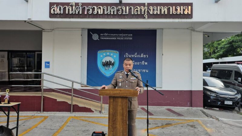 วันที่ 17 ตุลาคม พ.ศ.2568 ณ บริเวณด้านหน้าสถานีตำรวจนครบาลทุ่งมหาเมฆ เลขที่ 505 ถนนสวนพลู แขวงทุ่งมหาเมฆ เขตสาทร กรุงเทพมหานคร พ.ต.อ.พนม เชื้อทอง ผกก.สน.ทุ่งมหาเมฆ – อาจารย์ ธณกนก เชื้อทอง แม่บ้านตำรวจ พร้อมด้วย คณะ กต.ตร.ฯ และที่ปรึกษา กต.ตร.สน.ทุ่งมหาเมฆ และข้าราชการตำรวจฯ ร่วมประกอบพิธี เนื่องในวันตำรวจ ประจำปี 2568