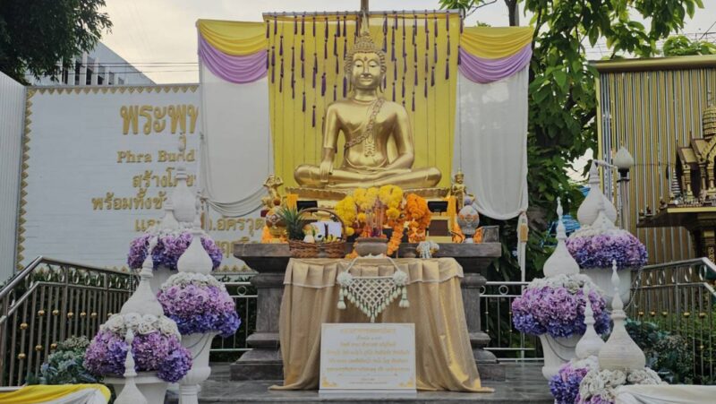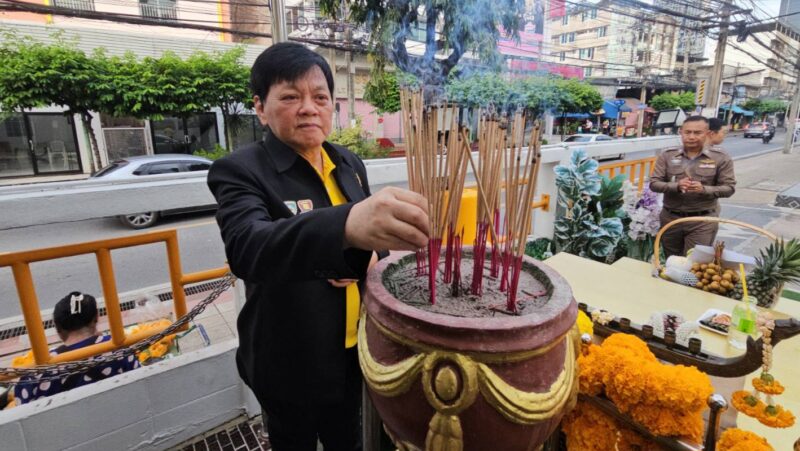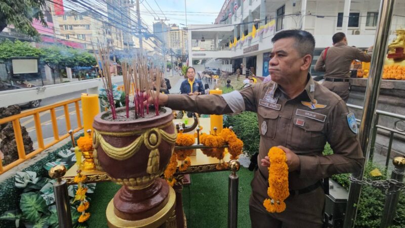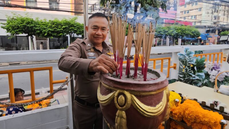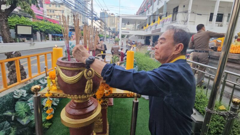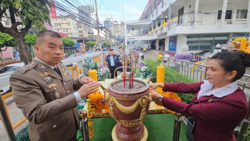 โดย เวลา 07:00 น. พ.ต.อ.พนม เชื้อทอง ผกก.สน.ทุ่งมหาเมฆ พร้อมด้วย อาจารย์ ธณกนก เชื้อทอง (ภริยา) และ คณะ กต.ตร.และที่ปรึกษา รวมถึงข้าราชการตำรวจและครอบครัว ร่วมประกอบพิธีสักการะ พระพุทธเมฆาชินราช และศาลพ่อปู่พิชัย ซึ่งเป็นสิ่งศักดิ์สิทธิ์ประจำ สน.ทุ่งมหาเมฆ เพื่อเป็นสิริมงคลกับข้าราชการตำรวจ ครอบครัว และภาคประชาชน จากนั้น ได้ร่วมกันทำบุญตักบาตร และรับศีลรับพร ครั้นเมื่อภายหลังจากเสร็จสิ้นการประกอบพิธีทางคณะพระสงฆ์