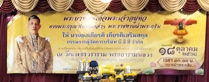 พระบาทสมเด็จพระเจ้าอยู่หัว ทรงพระกรุณาโปรดเกล้าฯ พระราชทานผ้าพระกฐิน ณ วัดเพชรวราราม พระอารามหลวง จังหวัดเพชรบูรณ์ เมื่อวันที่ 18 ตุลาคม พ.ศ. 2568 ณ วัดเพชรวราราม พระอารามหลวง อำเภอเมือง จังหวัดเพชรบูรณ์ นายยงเกียรติ เกียรติเสริมสกุล ได้มอบหมายให้ นายอุเทน พรหมมินทร์ (เท่) เป็นผู้แทนในการถวายผ้าพระกฐินพระราชทาน ที่พระบาทสมเด็จพระเจ้าอยู่หัว ทรงพระกรุณาโปรดเกล้าฯ พระราชทานผ้าพระกฐิน ให้แก่ นายยงเกียรติ เกียรติเสริมสกุล กรรมการผู้จัดการบริษัท บี อี ซี จำกัด ตามที่ได้ขอพระราชทานน้อมนำไปถวายพระสงฆ์จำพรรษากาลถ้วนไตรมาส