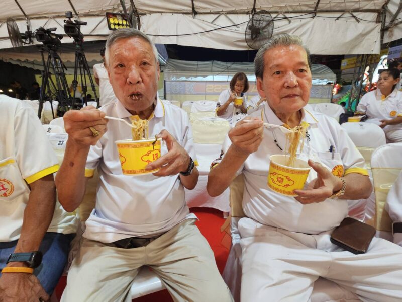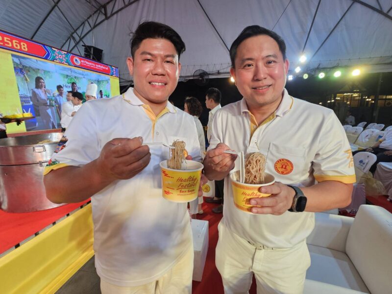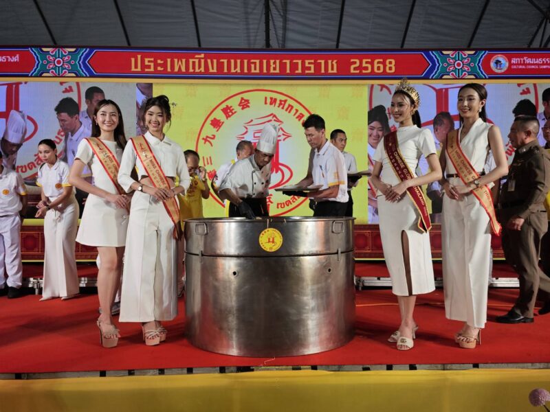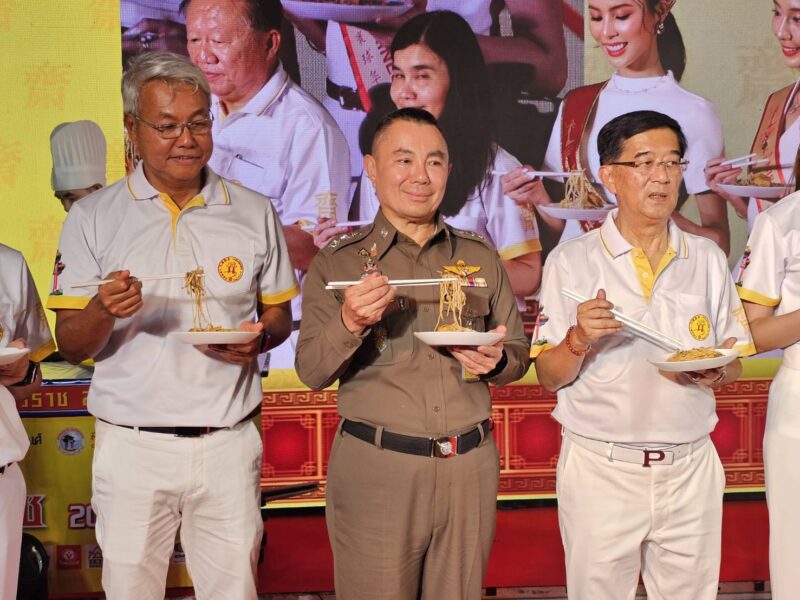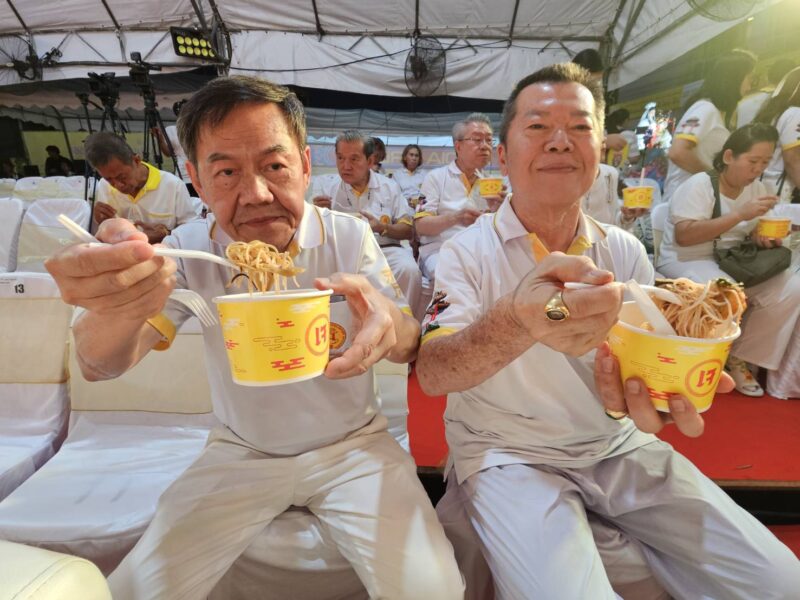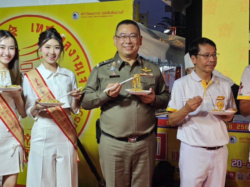 โดยหลังพิธีเปิดงาน นางสาวซาบีดา ไทยเศรษฐ์ รัฐมนตรีว่าการกระทรวงวัฒนธรรม พร้อมด้วย คณะผู้บริหารและผู้สนับสนับสนุน ได้ปรุงอาหารเจมงคลกระทะใหญ่ร่วมกับเซฟมืออาชีพจากโรงแรม แกรนด์ ไซน่า แบงคอก เยาวราช ในเมนู “สัมพันธ์ผัดหมี่ 50 ปี ไทย-จีน” จากวัตถุดิบมงคล อาทิ บะหมีชั่วสีเหลือง-แดง (ส้ม) แปะก๊วย คะน้าจีน (ฮ่องกง) เห็ดหอมจีน เห็ดนางฟ้า หัวไซโป๊ว ฟองเต้าหู้ทอดแบบเส้น คึ่นฉ่ายไทย เม็ดบัวไทย รากบัวจีน ถั่วลิสง งา พริกหยวก และเห็ดชิเมจิดำ-ขาว พร้อมแจกจ่ายให้ผู้เข้าร่วมงานชิมฟรี! 1,550 จาน พร้อมทั้งร่วมปล่อยขบวนมังกร สิงโต และแห่รถบุปผาชาติ โดยมีผู้เข้าร่วมงานทั้งชาวไทยและต่างชาติร่วมในพิธีและจับจ่ายอาหารเจตลอดเส้นทางถนนเยาวราชอย่างเนื่องแน่น