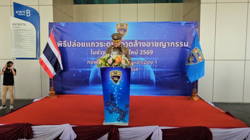 พล.ต.ต.ปรัชญา ประสานสุข รอง ผบช.สตม.เป็นประธานในพิธีปล่อยแถวระดมกวาดล้างอาชญากรรมและอำนวยความสะดวก ด้านพิธีการเข้าเมือง ในห้วงเทศกาลปีใหม่ 2569