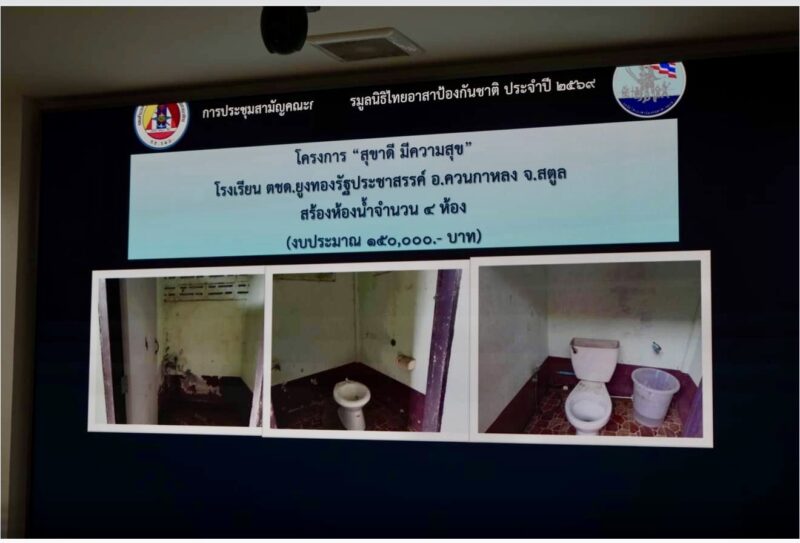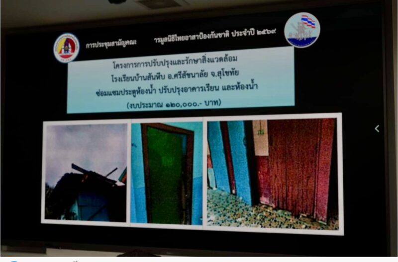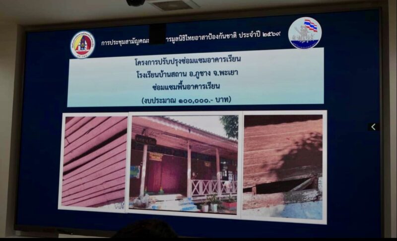 ☆ ศูนย์ ทสปช. ในทะเล มีโครงการที่จะดำเนินงานมีจำนวน 3 โครงการ และจะต้องใช้งบประมาณ 200,000 บาท นอกจากโครงการต่างๆแล้วยังมีเรื่องการมอบเงินช่วยเหลือกำลังพล รวมเป็นจำนวนเงิน 368,500 บาท และได้มอบเครื่องช่วยหายใจจำนวน 2 เครื่อง มูลค่ารวม 900,000 บาท ให้แก่ โรงพยาบาลพระมงกุฎเกล้า เพื่อสนับสนุนการรักษาทหารที่ได้รับบาดเจ็บจากการปฏิบัติหน้าที่ รวมเป็นจำนวนเงินช่วยเหลือทั้งสิ้นจำนวน 1,268,500 บาท พร้อมกันนี้ ยังได้กล่าวถึงเมื่อวันที่ 16 กุมภาพันธ์ พ.ศ.2569 ที่ผ่านมา คณะฯได้ร่วมมอบถังน้ำขนาด 1,000 ลิตร จำนวน 100 ใบ ให้กองกำลังสุรนารี