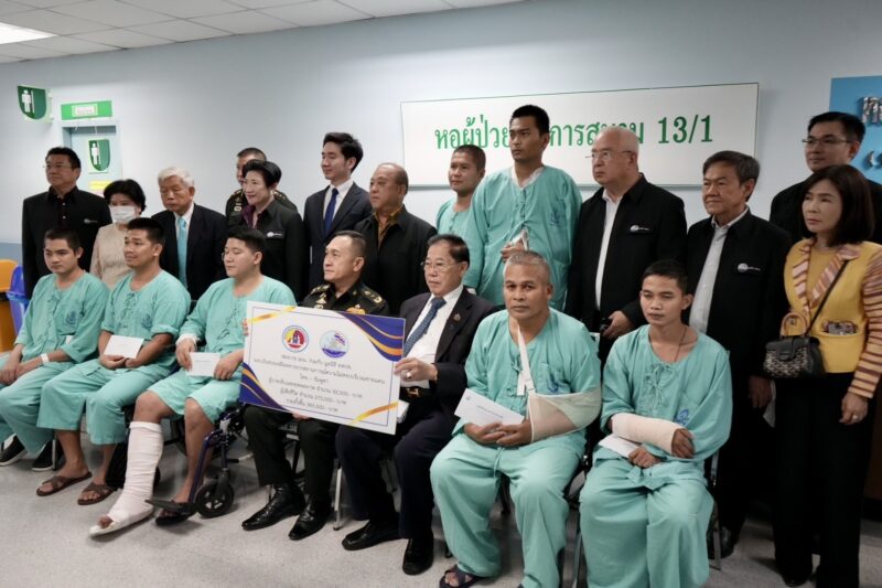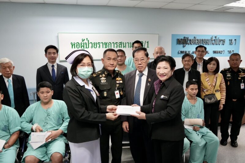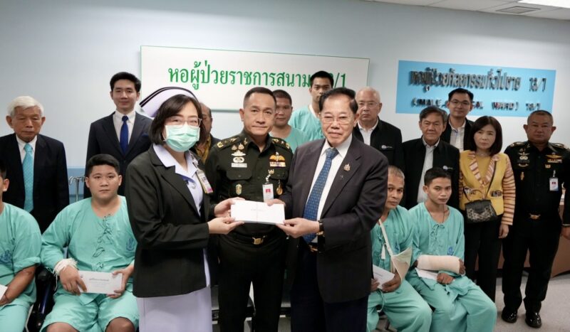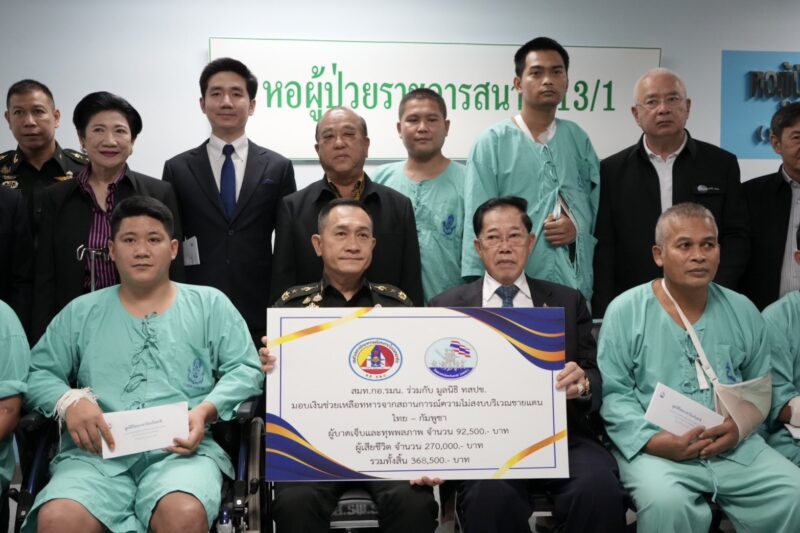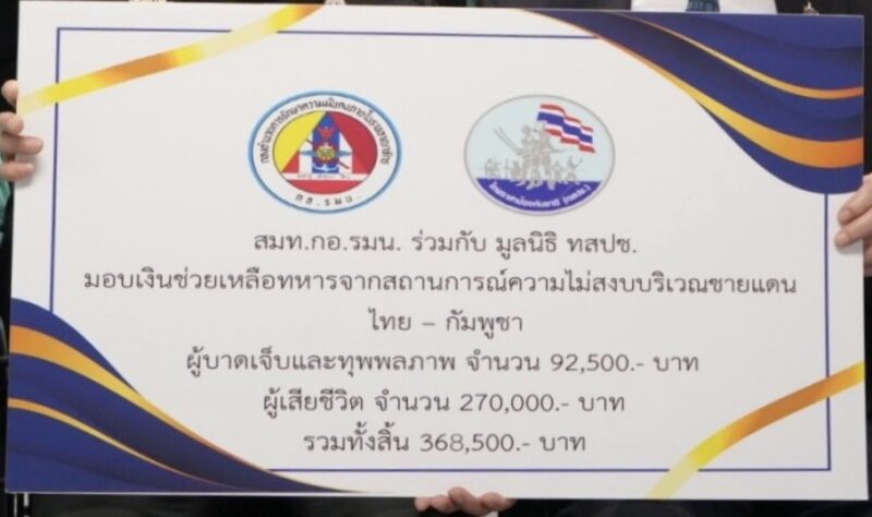 สมท.กอ.รมน.ร่วมกับ มูลนิธิ ทสปช.เข้าเยี่ยมให้กำลังใจทหารชายแดนไทย – กัมพูชา พร้อมทั้งมอบเงิน 1.26 ล้าน เพื่อเยียวยา และ จัดหาอุปกรณ์เครื่องช่วยหายใจ