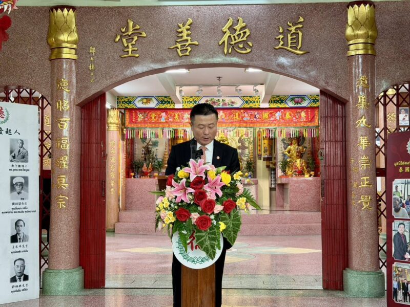 泰國豐順會館主席徐永添 คุณปัณณธร ธัญวุฒิสกุล นายกสมาคมฮงสุน 泰國崇德善堂永遠榮譽董事長黃承金、馮世紀 คุณวิชัย วงศ์วิเศษสุข คุณประพันธ์ ปัญญาวุฒิไกร ประธานเกียรติคุณผู้ทรงเกียรติถาวรของมูลนิธิศรัทธาสงเคราะห์ 陳榮浪董事長 คุณตั้งหย่งหลั่ง ประธานบริษัท 泰國福特斯汽車電子有限公司 王士忠董事長 คุณเฮ้งสือตรง ประธานบริษัท 泰國安泰有限公司