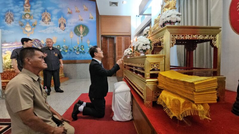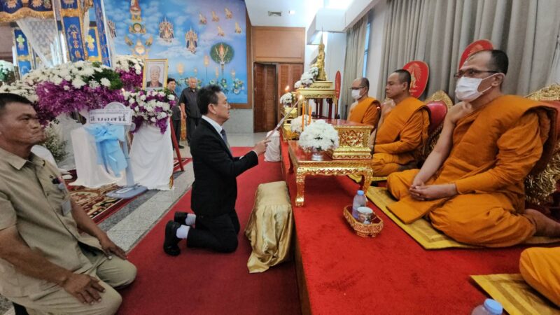 [ ถวายเครื่องจตุปัจจัยไทยธรรมและผ้าไตร ]