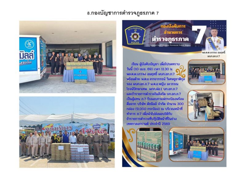 การมอบผลิตภัณฑ์กาแฟครั้งนี้เพื่อสนับสนุนการปฏิบัติหน้าที่ และเป็นขวัญกำลังใจแก่เจ้าหน้าที่ตำรวจผู้ปฏิบัติงาน ในช่วงเทศกาลวันหยุดสงกรานต์ ประจำปี 2569