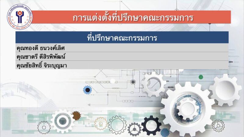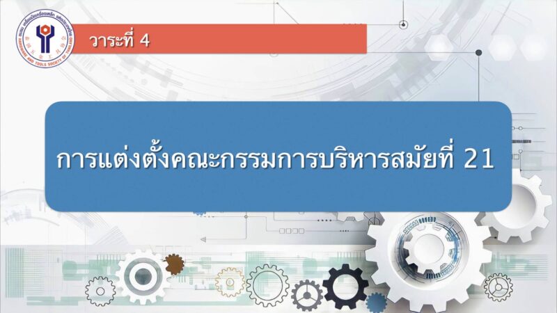 [ วาระที่ 4 ] การแต่งตั้งคณะกรรมการบริหารสมัยที่ 21 วันนี้ ในที่ประชุมได้มี [ การแต่งตั้งรองประธานกรรมการ, รองประธานกรรมการ และ ประธานฝ่าย ] โดยมีรายชื่อและตำแหน่งดังต่อไปนี้