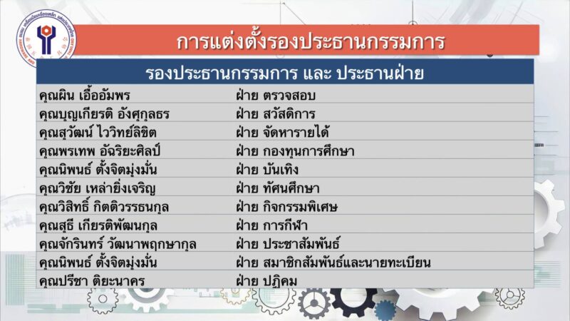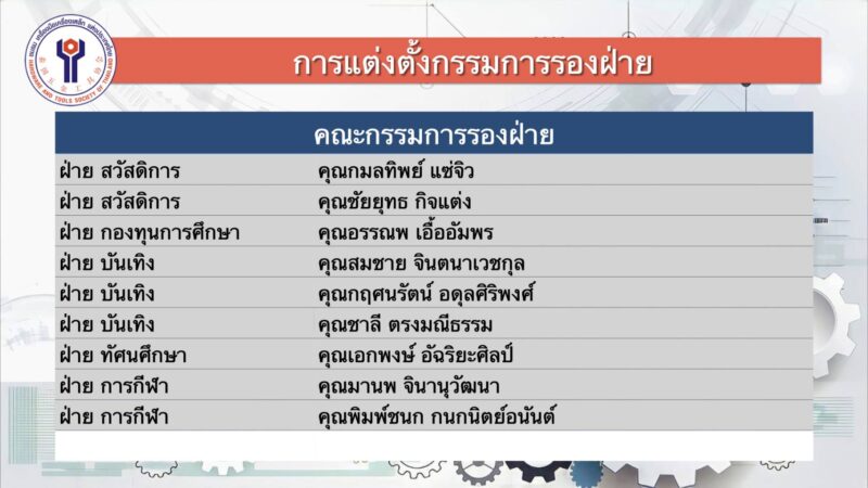 [ การแต่งตั้งกรรมการรองฝ่าย ] มีรายชื่อและตำแหน่ง ดังต่อไปนี้