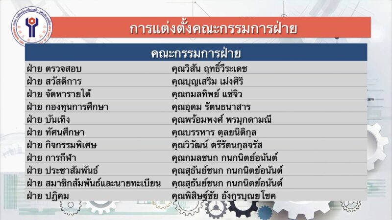 [ การแต่งตั้งคณะกรรมการฝ่าย ] มีรายชื่อและตำแหน่ง ดังต่อไปนี้
