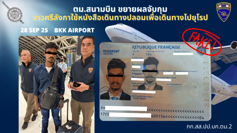 [ 2 ] ตม.สนามบิน ขยายผลจับกุมชาวศรีลังกาใช้หนังสือเดินทางปลอมเพื่อเดินทางไปยุโรป
