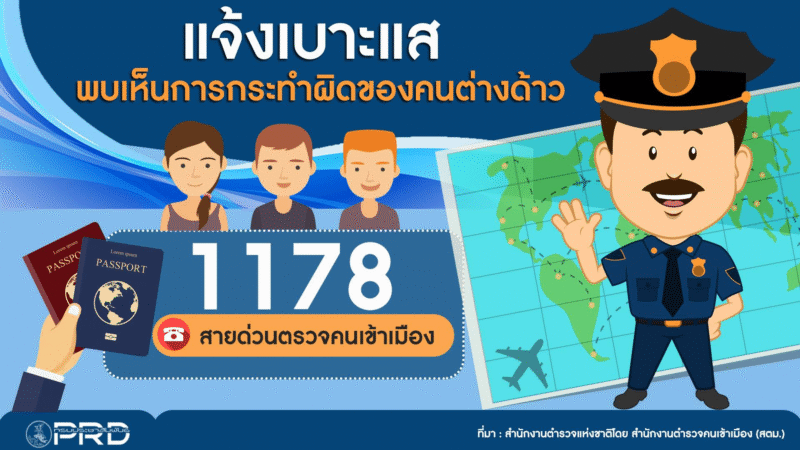 # หากประชาชนท่านใดพบเห็นเบาะแสการกระทำความผิด กรุณาแจ้งมายัง สำนักงานตรวจคนเข้าเมือง อาคารเฉลิมพระเกียรติสมเด็จพระบรมโอรสาธิราชฯ สยามมกุฎราชกุมารพระชนมพรรษา 60 พรรษา เลขที่ 904 หมู่ที่ 6 ต.บ้านใหม่ อ.ปากเกร็ด จว.นนทบุรี 11120 หรือติดต่อตรวจคนเข้าเมืองจังหวัดในพื้นที่ หรือที่ www.immigration.go.th