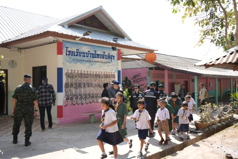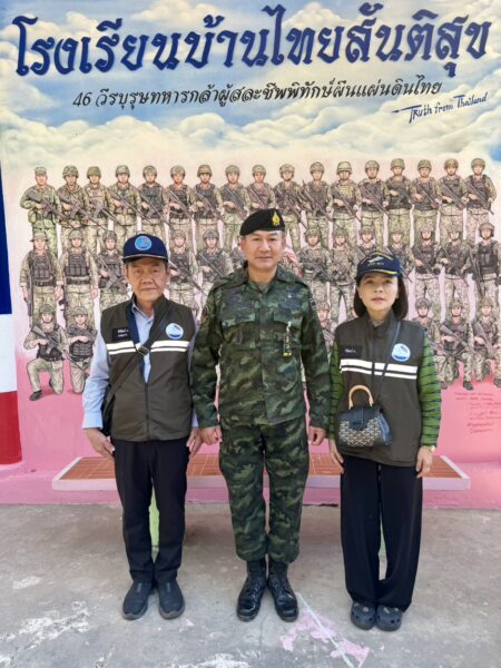 เวลา 15:00 น. คณะฯ ร่วมเดินทางไป รร.ไทยสันติสุข เพื่อมอบเงินและสิ่งของอุปกรณ์การเรียนให้กับเด็กนักเรียนเพื่อเป็นขวัญกำลังใจและให้ตั้งใจศึกษาเล่าเรียน