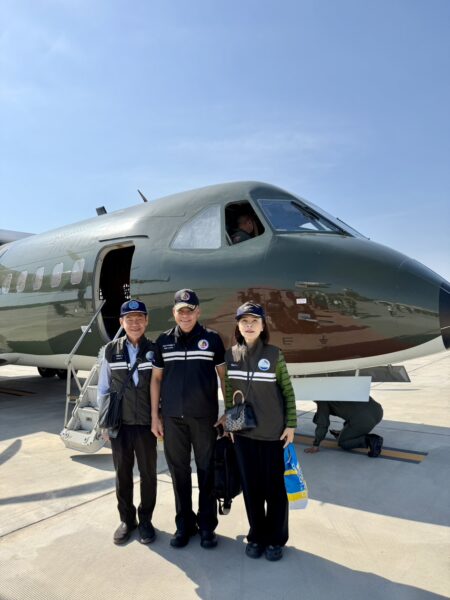วันที่ 11 กุมภาพันธ์ พ.ศ.2569 ณ กองการบิน ศูนย์การเคลื่อนย้าย ทบ.ดอนเมือง กรุงเทพฯ พล.ท.ธนาธิป สว่างแสง ผู้อำนวยการสำนักกิจการมวลชนและสารนิเทศ กองอำนวยการรักษาความมั่นคงภายในราชอาณาจักร (ผอ.สมท.กอ.รมน.) นำคณะผู้แทนหน่วยงานและเครือข่ายสนับสนุน รวมกว่า 70 นาย อาทิ บริษัท ไทยพิพัฒน์ อิมปอร์ต จำกัด โดย คุณพิพัฒน์ – คุณวิจิตร กนกนิตย์อนันต์, บริษัทสี่แสงโยธา (1979) จำกัด, บริษัท เจแอนด์บี เทรดดิ้ง (โกลด์) จำกัด, มูลนิธิ ทสปช. (ไทยอาสาป้องกันชาติ), มูลนิธิปอเต็กตึ๊งแห่งประเทศไทย, การไฟฟ้านครหลวง (MEA), บริษัท กวีวรรณผลิตภัณท์คอนกรีต จำกัด ฯลฯ ร่วมเดินทางโดยอากาศยานแบบ C-295W จากท่าอากาศยานทหาร กองบิน 6 ดอนเมือง ไปยังท่าอากาศยานบุรีรัมย์ โดย