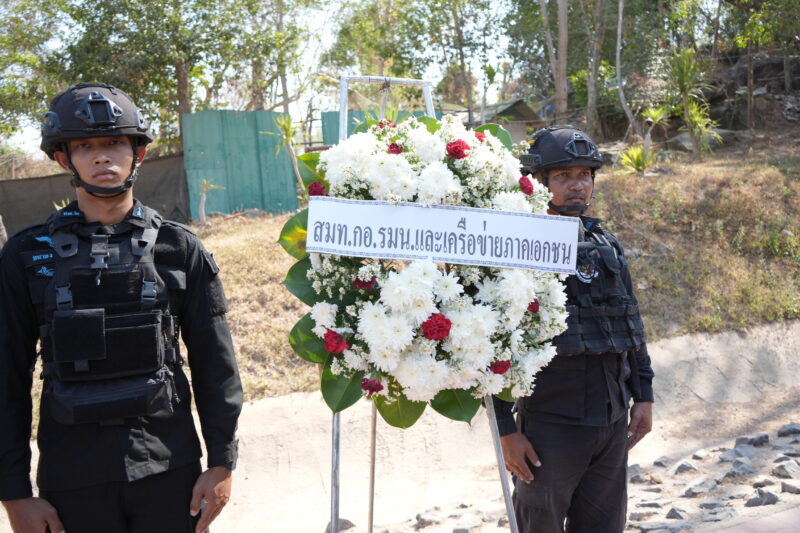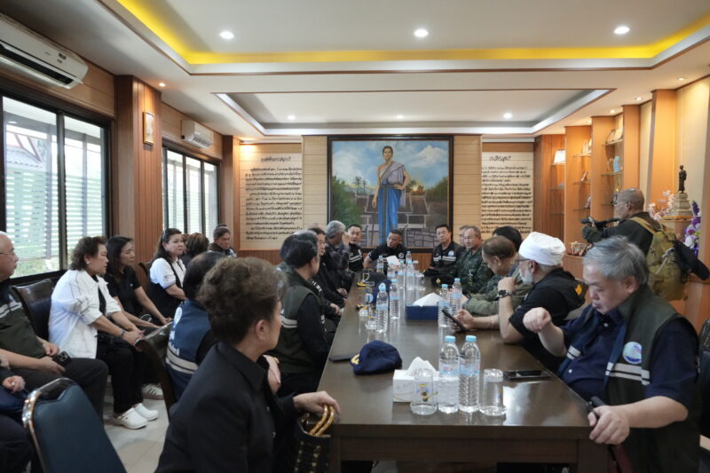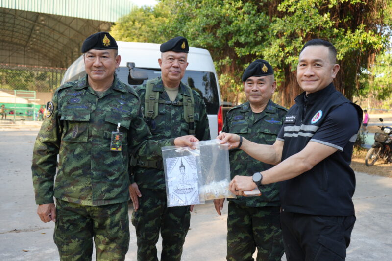 เวลา 11:30 น. พล.ท.ธนาธิป สว่างแสง ผู้อำนวยการสำนักกิจการมวลชนและสารนิเทศ กองอำนวยการรักษาความมั่นคงภายในราชอาณาจักร (ผอ.สมท.กอ.รมน.) นำคณะผู้แทนหน่วยงานและเครือข่ายสนับสนุน ร่วมประกอบพิธีมอบสิ่งของจำเป็นให้กับ กำลังพลที่ปฏิบัติหน้าที่ตามแนวชายแดนไทย – กัมพูชา ประกอบด้วย อวนจำนวน 4,000 กิโลกรัม พร้อมเสาเหล็กจำนวน 50 แท่ง ขนาด 1.8 คูณ 3 เมตร สำหรับติดตั้งระบบแหอวนป้องกันภัยทางอากาศ บังเกอร์จำนวน 40 ท่อ (ท่อปูนเสริมใยเหล็ก ขนาด 1.5 คูณ 5 เมตร) ถุงกระสอบทรายจำนวน 5,000 ถุง เพื่อเสริมแนวป้องกันในพื้นที่เสี่ยง และถังเก็บน้ำความจุ 2,000 ลิตร จำนวน 40 ถัง สำหรับใช้ในการอุปโภคบริโภคของกำลังพลตามแนวชายแดน นอกจากนี้ยังมีผ้าห่มจำนวน 2,000 ผืน เพื่อบรรเทาความหนาวเย็นให้กำลังพลที่ปฏิบัติหน้าที่ตลอด 24 ชั่วโมง และได้มอบเงินให้กับครอบครัว พลฯ ภานุพัฒน์ เสาร์สา วีรบุรุษที่พลีชีพในสนามรบขณะบุกตีเนิน 350 โดยการสนับสนุนดังกล่าวได้รับความร่วมมือจาก คณะกรรมการมูลนิธิ ทสปช./ ทสปช./ ชมรม พคบ./ เครือข่ายสมาคมไทยซิกข์ และเครือข่ายภาคประชาชน อาทิ บริษัท ไทยพิพัฒน์ อิมปอร์ต จำกัด, บริษัทสี่แสงโยธา (1979) จำกัด, บริษัท เจแอนด์บี เทรดดิ้ง (โกลด์) จำกัด, มูลนิธิ ทสปช. (ไทยอาสาป้องกันชาติ), มูลนิธิปอเต็กตึ๊งแห่งประเทศไทย, การไฟฟ้านครหลวง (MEA), บริษัท กวีวรรณผลิตภัณท์คอนกรีต จำกัด ฯลฯ จากนั้น คณะฯ ได้เข้าหารือกับผู้บัญชาการกองกำลังสุรนารี (ผบ.กกล.สุรนารี) และที่ปรึกษาแม่ทัพภาคที่ 2 เพื่อรับฟังสถานการณ์ด้านความมั่นคงในพื้นที่ชายแดน พร้อมแลกเปลี่ยนข้อมูลเกี่ยวกับสถานการณ์ในพื้นที่ โดยเฉพาะการป้องกันการโจมตีทางอากาศจากโดรน และแนวทางเสริมความแข็งแรงให้ฐานปฏิบัติการ ก่อนส่งมอบสิ่งของสนับสนุนอย่างเป็นทางการให้ตรงตามความต้องการของหน่วยปฏิบัติ ณ กองกำลังสุรนารี ต่อมา
