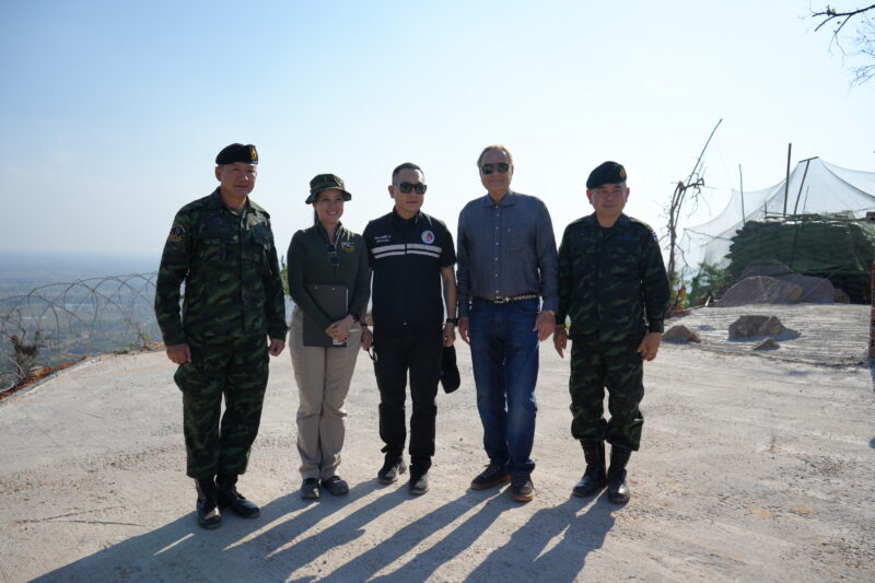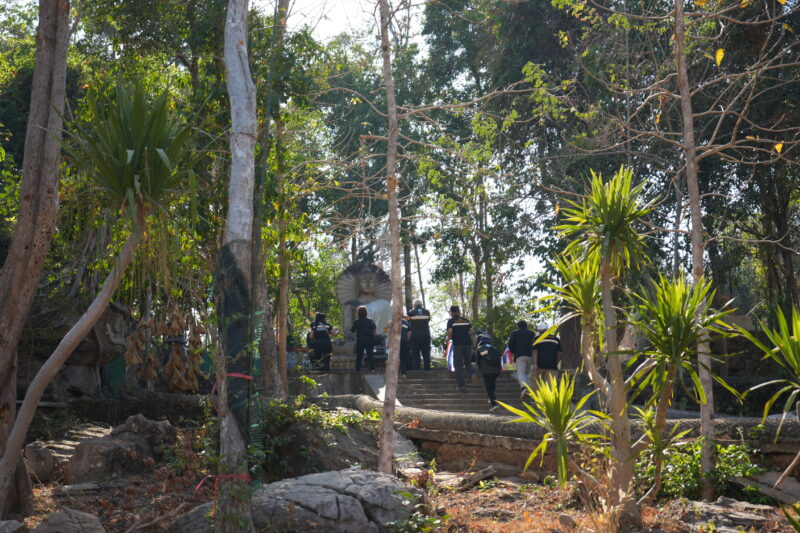 เวลา 13:00 น. คณะฯ ได้ร่วมเดินทางไปสักการะสิ่งศักดิ์สิทธิ์ ณ ปราสาทตาควาย เพื่อความเป็นสิริมงคล พร้อมทั้งลงพื้นที่เยี่ยมเยียนและให้กำลังใจทหารแนวชายแดนบริเวณเนิน 350 อย่างใกล้ชิด สอบถามความเป็นอยู่และสภาพการปฏิบัติภารกิจ เพื่อสร้างขวัญกำลังใจแก่กำลังพลผู้ปฏิบัติหน้าที่ในพื้นที่แนวหน้า ต่อจากนั้น